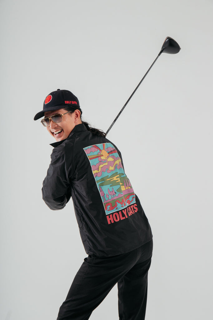 -バックにはゴルフ場のロストボールを猫が地中に集めてる、カラフルなヴィンテージ感のあるデザインで風合いのあるプリントに仕上げた人気アイテム。軽量で動きやすく快適にラウンド可能。場所を選ばない日常使いもOKの1枚を。